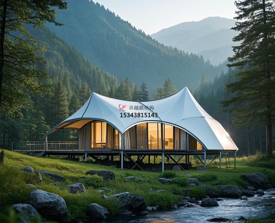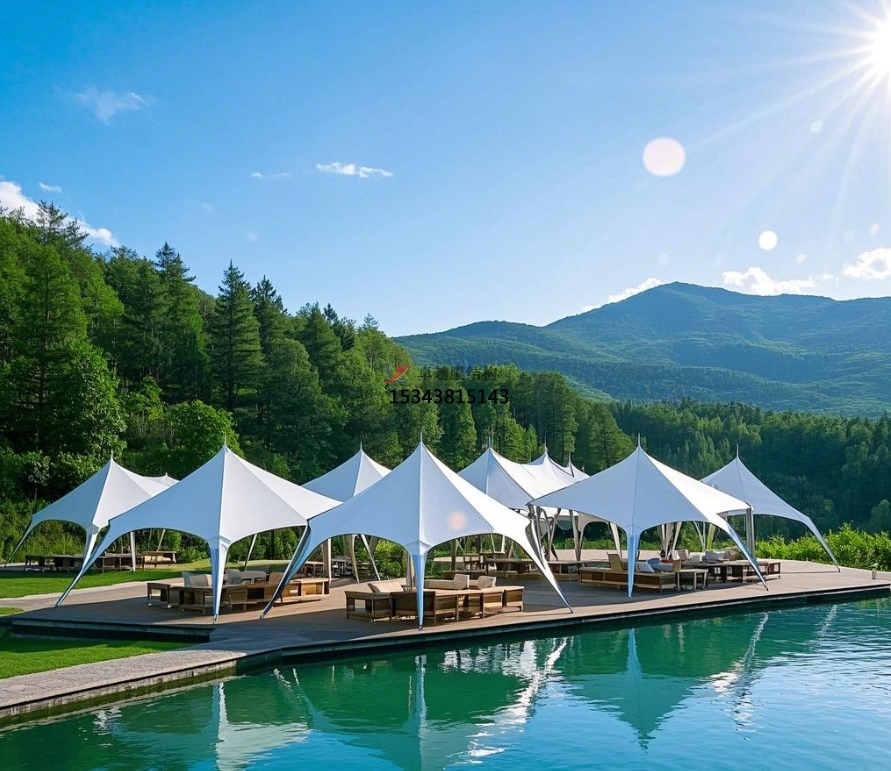 帳篷酒店膜結(jié)構(gòu)在各類旅游場(chǎng)景中廣泛應(yīng)用。在山地旅游景區(qū),膜結(jié)構(gòu)帳篷可依山勢(shì)而建,巧妙融入自然山林景觀,為游客提供親近山林、聆聽鳥鳴的住宿體驗(yàn);海濱度假勝地,帳篷酒店膜結(jié)構(gòu)憑借其輕盈造型與抗風(fēng)性能,矗立在沙灘旁,讓游客伴著海浪聲入眠;在草原旅游區(qū),大型膜結(jié)構(gòu)帳篷酒店可作為綜合性住宿場(chǎng)所,內(nèi)部設(shè)置多個(gè)房間與公共區(qū)域,既能滿足游客住宿需求,又能舉辦篝火晚會(huì)等特色活動(dòng),豐富游客的草原之旅。