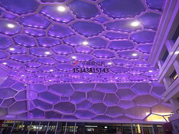 ETFE膜結(jié)構(gòu)吸引人方面在哪?當(dāng)然在于符合大眾需求的眾多優(yōu)勢上,壽命長,高自潔,ETFE膜結(jié)構(gòu)設(shè)計美觀等等,ETFE膜結(jié)構(gòu)自身的透明何嘗不是一種美,用于裝飾設(shè)計,加上燈光效果結(jié)合,夜景也是美極了!