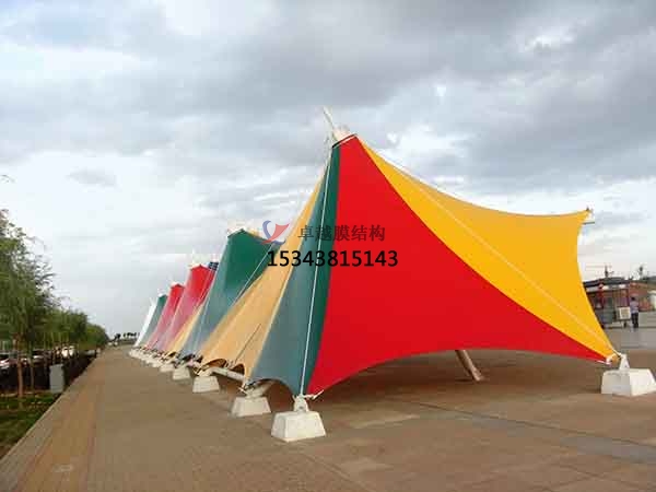 景觀膜結(jié)構(gòu)工程能提供豐富多彩的用途,并與園林景觀溶為一體。創(chuàng)造出讓人們盡情享受的快樂空間。充分展示了結(jié)構(gòu)構(gòu)件清晰受力的藝術(shù)之美,它巧妙的整合周圍的環(huán)境,給人們一種高貴典雅、浪漫溫馨之感。另外由于膜材料本身特有的顯色性,在夜間彩燈的映射下能形成絢麗繽紛的景觀。不僅為人們提供遮陽避雨的空間。同時(shí),更由于這種生動(dòng)活潑的造型能給人們帶來時(shí)尚、輕松的休閑感受,所以廣受歡迎。