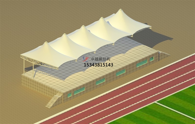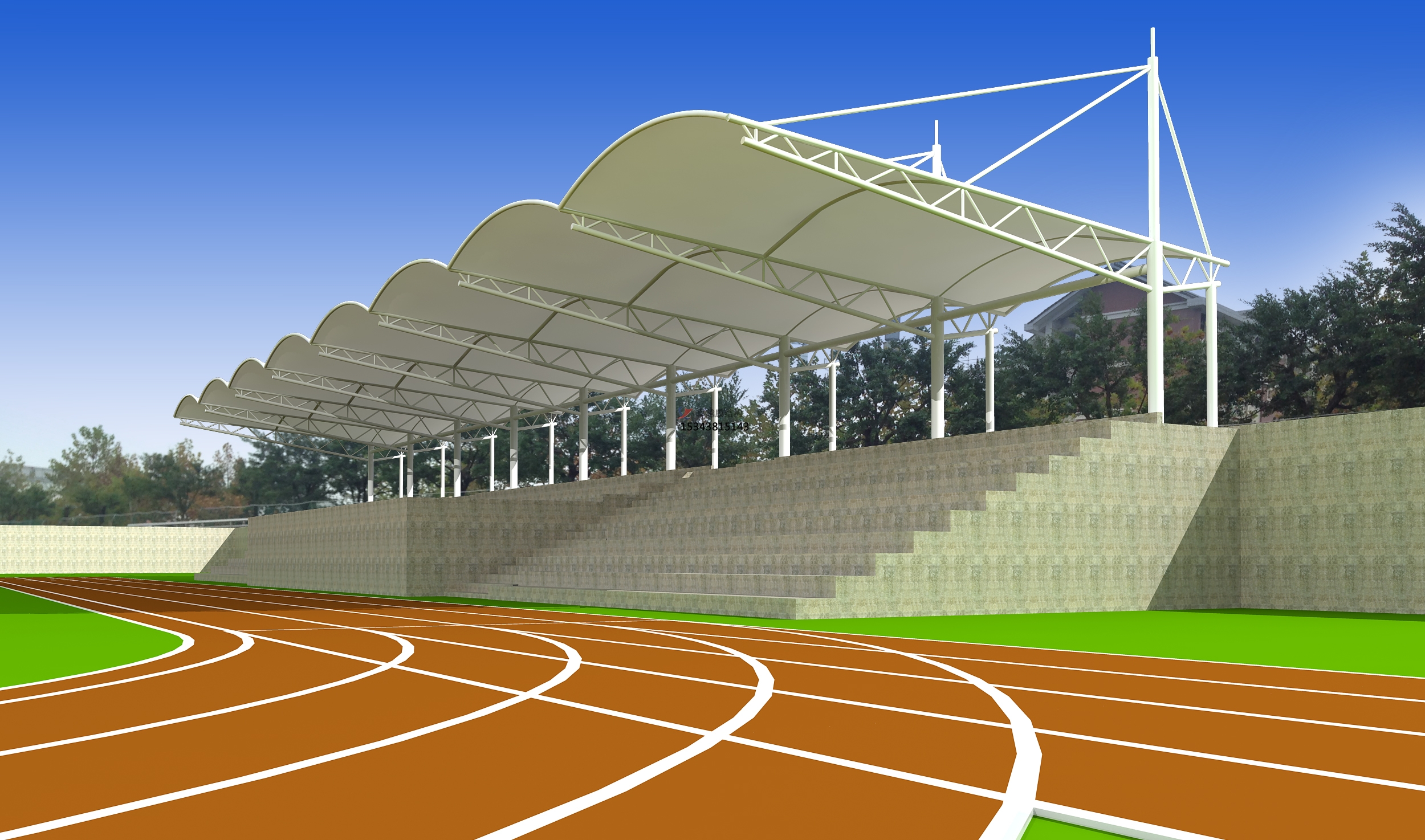張拉膜看臺(tái)主要用于各類地方體育場主席臺(tái)雨棚,各類學(xué)校體育場看臺(tái)雨棚遮蓋,我公司是國內(nèi)較早從事大懸挑張拉膜結(jié)構(gòu)看臺(tái)設(shè)計(jì)施工的專業(yè)廠家,下面介紹一下我們?cè)谙尻栔苓吙h市完工的一些張拉膜看臺(tái)設(shè)計(jì)施工案例,我公司先后在襄陽周邊承接了襄陽職業(yè)技術(shù)學(xué)院看臺(tái)雨棚、棗陽市陽光學(xué)校張拉膜張拉膜看臺(tái)罩棚、襄陽市第中學(xué)張拉膜看臺(tái)遮陽棚張拉膜看臺(tái)遮陽棚等設(shè)計(jì)施工項(xiàng)目,簡介如下: