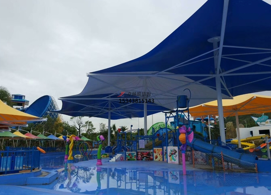 水上樂園遮陽棚具有很好的物理性能,就拿我們常用于水上樂園遮陽棚的PVDF膜材來說其耐腐蝕、防水、耐菌、耐高溫、抗紫外線、老化慢,有效使用期可以達到20年,從長遠角度不僅可以增加水上樂園的效益,還能有效降低成本。