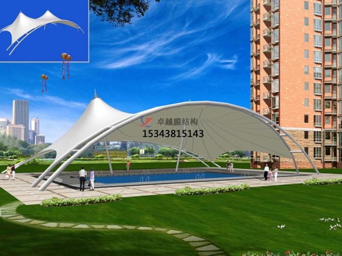 膜結構是建筑結構中更新發(fā)展起來的一種形式,它以性能優(yōu)良的織物為材料,或是向膜內充氣,由空氣壓力支撐膜面,或是利用柔性鋼索或剛性支撐結構將面繃緊,從而形成具有一定剛度、能夠覆蓋大跨度空間的結構體系。自從1970年代以來, 膜結構在國外已逐漸應用于體育建筑、商場、展覽中心、交通服務設施等大跨度建筑中。膜結構已成為結構設計選型中的一個主要方案。成為化纖紡織品應用的一個重要領域。近年來在中國建筑 結構中也有長足的進展。大阪萬國博覽會中的美國館采用了氣承式空氣 膜結構。