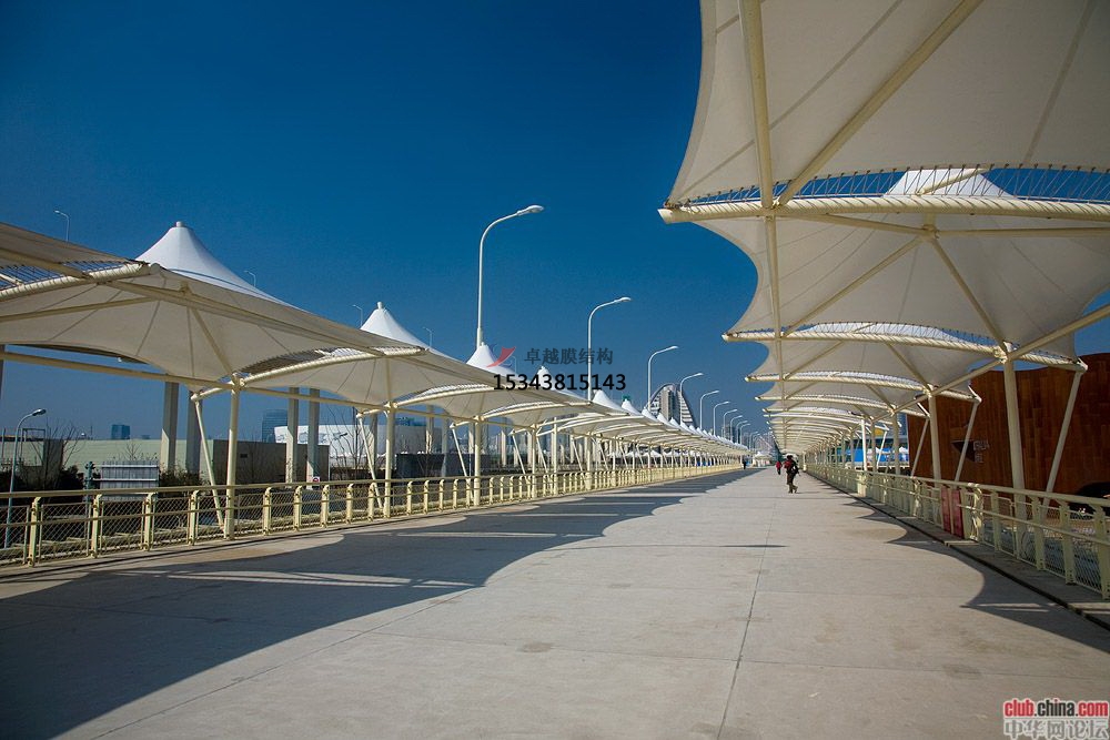 夜晚,建筑物內的燈光透過屋蓋膜照亮夜空,從而使建筑物的體型顯現(xiàn)出夢幻般的效果,讓人們欣賞無比美妙的畫面,頓時忘記一天工作的辛勞。所有說廣場張拉膜在城市中是不可缺少的。