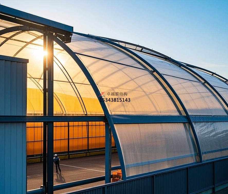 在后期維護上,膜結(jié)構(gòu)罩棚同樣節(jié)省費用。膜材具有自潔性,表面不易附著灰塵與污漬,雨水沖刷即可保持清潔。并且,膜材耐候性強,耐腐蝕、抗老化,使用壽命可達 15 - 25 年。日常維護只需定期檢查膜材與支撐結(jié)構(gòu)狀況,維護成本大幅降低。據(jù)統(tǒng)計,使用膜結(jié)構(gòu)罩棚的垃圾中轉(zhuǎn)站,每年維護費用可比傳統(tǒng)建筑形式的中轉(zhuǎn)站節(jié)省 30% - 50% 。
