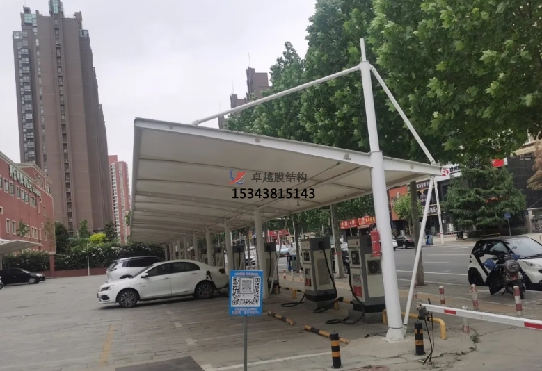 膜結(jié)構(gòu)小轎車(chē)充電樁停車(chē)棚雨棚是最近幾年才流行起來(lái)的,因?yàn)殡妱?dòng)小轎車(chē)有大型的充電樁,為了充電的安全,就有了膜結(jié)構(gòu)小轎車(chē)充電樁停車(chē)棚雨棚。