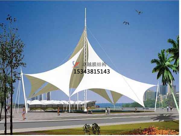 6、景觀設施:膜結構以其特殊的建筑表現(xiàn)力,主要體現(xiàn)在造型、漫射透光、豐富多彩等方面,可廣泛應用于入口、地標小品、步行街、停車場等,對其他建筑特點不需要更高的要求。