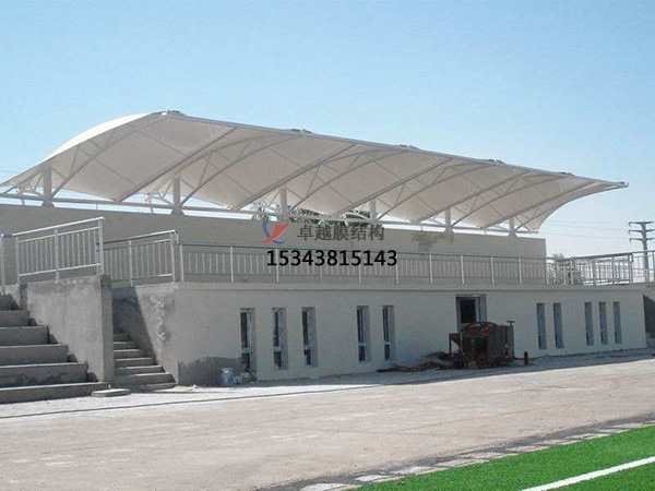 PTFE膜結(jié)構(gòu)看臺(tái)的結(jié)構(gòu)優(yōu)勢:PTFE膜結(jié)構(gòu)看臺(tái)的優(yōu)勢很多。其中結(jié)構(gòu)優(yōu)勢主要有造型美觀獨(dú)特、大跨度覆蓋和良好的受力性能。PTFE膜結(jié)構(gòu)可以創(chuàng)造出傳統(tǒng)建筑體系無法實(shí)現(xiàn)的設(shè)計(jì)方案,如各種曲線、弧線、折線等多樣形狀,為體育場館增添獨(dú)特的建筑美感,使其成為城市的標(biāo)志性建筑之一。由于PTFE膜材輕質(zhì)且強(qiáng)度高,配合合理的支撐結(jié)構(gòu),可實(shí)現(xiàn)較大跨度的空間覆蓋,減少中間支撐柱的設(shè)置,為觀眾提供更開闊、無遮擋的視野。膜結(jié)構(gòu)通過合理的預(yù)應(yīng)力分布,能夠均勻地承受風(fēng)荷載、雪荷載等各種外荷載,在受力過程中通過膜面的變形來適應(yīng)荷載變化,使結(jié)構(gòu)保持穩(wěn)定。