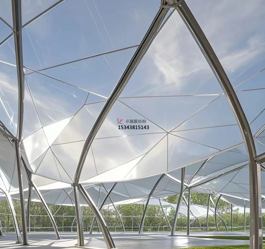 張拉索膜結(jié)構(gòu):張拉索膜結(jié)構(gòu)通過(guò)張拉使膜的內(nèi)部產(chǎn)生一定的預(yù)應(yīng)力,以抵御外界的風(fēng)荷載和其他荷載。這種結(jié)構(gòu)可以根據(jù)需要制成任意復(fù)雜曲面形狀,體現(xiàn)自然流暢之美,同時(shí)膜材的多種顏色選擇也使其能更好地適應(yīng)周邊環(huán)境,滿足建筑效果要求。